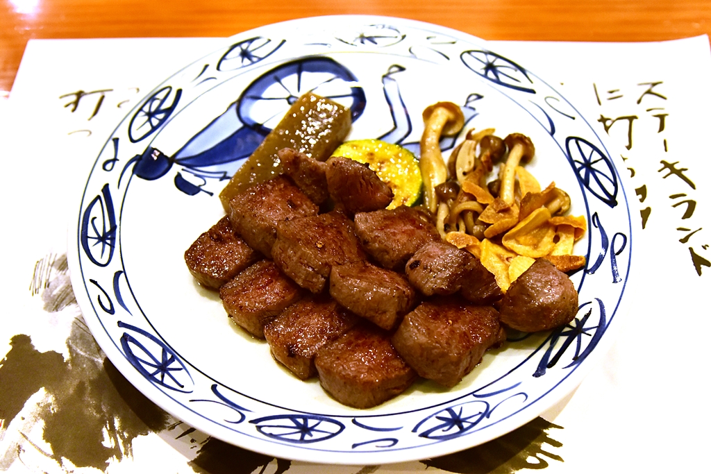 Steakland หรือ “ดินแดนแห่งสเต็ก” คือ ร้านอาหารญี่ปุ่นแนวเทปปันยากิที่นำเสนอเมนูอาหารย่างกระทะร้อนแบบเน้นเนื้อวากิวที่มีให้เลือกหลากหลายระดับหลากหลายเกรดตั้งแต่ราคา 3,000 Yen ต้นๆไปจนถึงหลัก 10,000 Yen พร้อมด้วยอาหารทะเลย่างกระทะอีกมากมาย อาทิ กุ้งล็อบสเตอร์ หอยเชลล์และปลาหมึกยักษ์ ซึ่งทั้งหมดนี้จะมีเชฟชาวญี่ปุ่นมาย่างกระทะโชว์กันแบบสดๆต่อหน้าต่อตาเลย