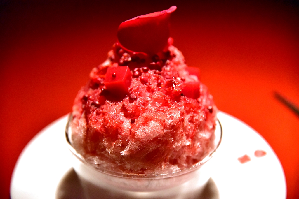 14. Amarena Kakigori (9.00 GBP) – น้ำแข็งไสเชอร์รีและราสเบอร์รีสีแดงสดรสเปรี้ยวจี๊ดจ๊าด