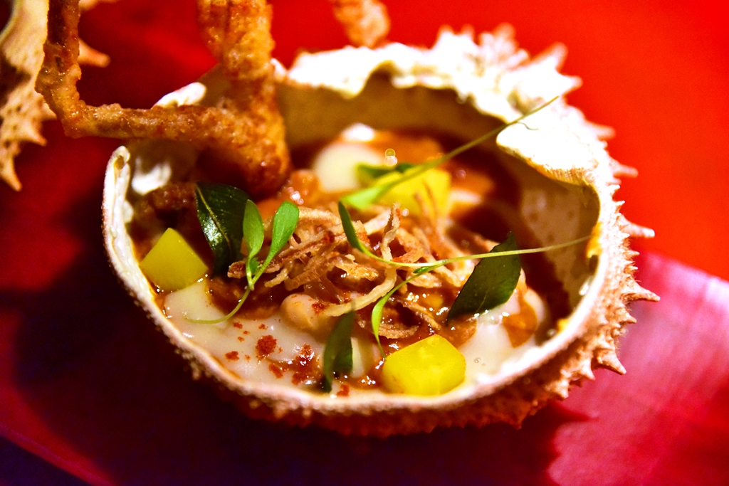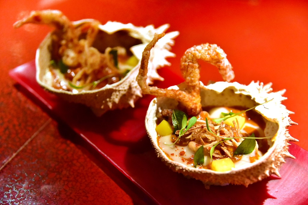 8. Chilli King Crab Basque Country Style (30.00 GBP) – เนื้อปูคิงแคร้บและปูนิ่มทอดกรอบในซอสพริกสไตล์สิงคโปร์โรยหน้าด้วยหอมเจียว
