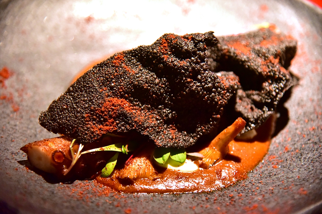 10. Galician Octopus who spoke Indian (25.00 GBP) – หนวดปลาหมึกยักษ์ย่างได้นุ่มสุดๆเสิร์ฟในสไตล์อินเดียกับเครื่องเทศนานาชนิดและแคร้กเกอร์หมึกดำในซอสมะเขือเทศ