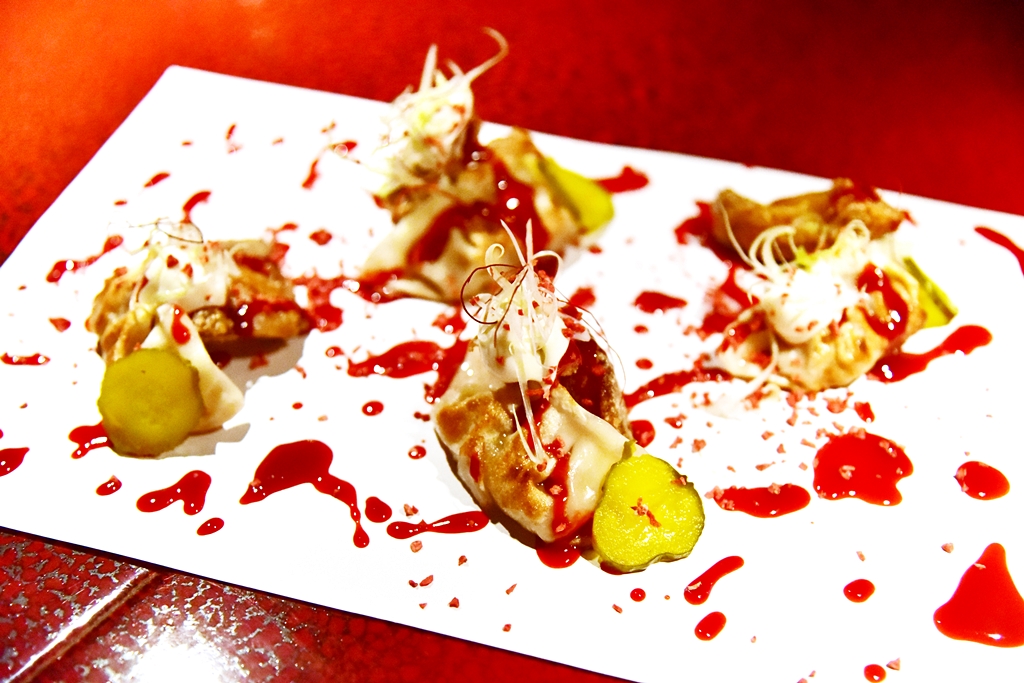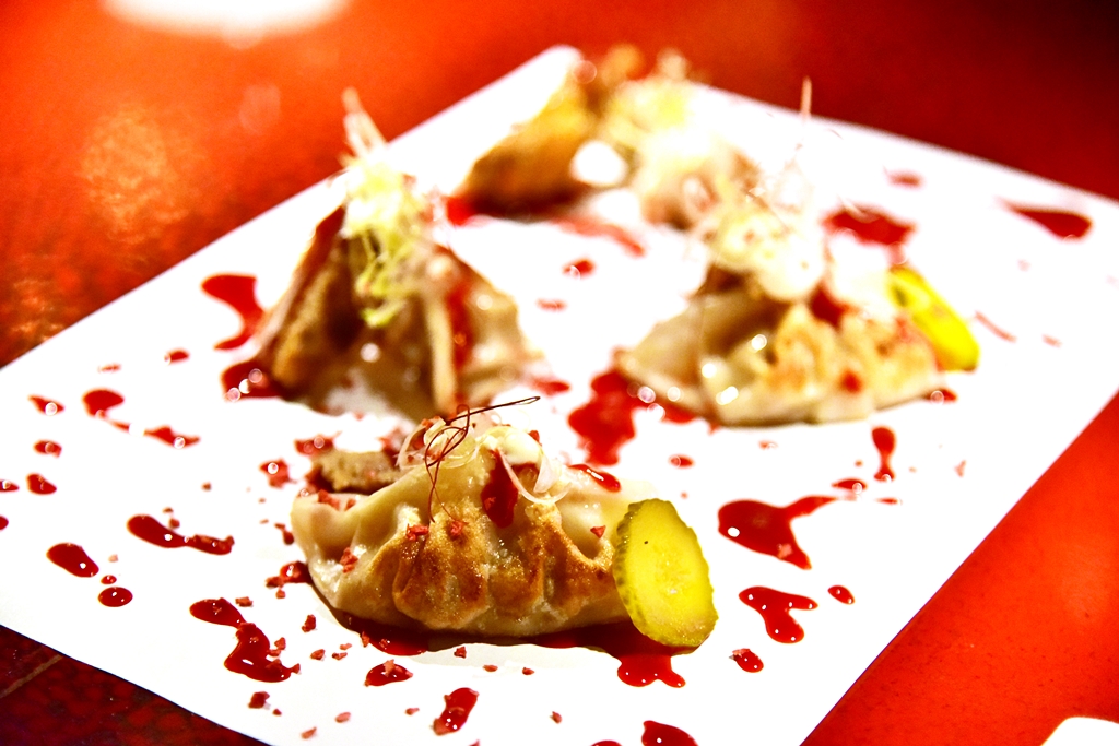 1. Pekinese Dumplings (20.00 GBP) – เกี๊ยวซ่าแป้งกรอบนุ่มดีงามเสิร์ฟคู่กับหูหมูกรอบและแตงกวาดองพร้อมด้วยซอสฮอยซินสตรอเบอร์รีรสเปรี้ยวหวานสีแดงฉานที่เข้ากันได้ดีมาก !!