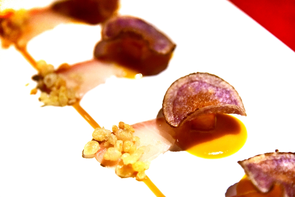 4. Usuzukuri-Carpaccio of Hamachi Fish and Chips (17.00 GBP) – ฟิชแอนด์ชิพสไตล์ญี่ปุ่นที่ประกอบไปด้วยเนื้อปลาฮามาจิ แป้งเทมปุระและซอสส้มยูสุรสเปรี้ยวสดชื่น