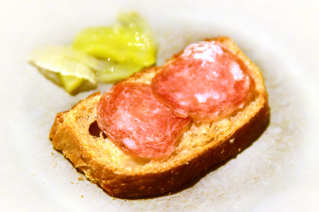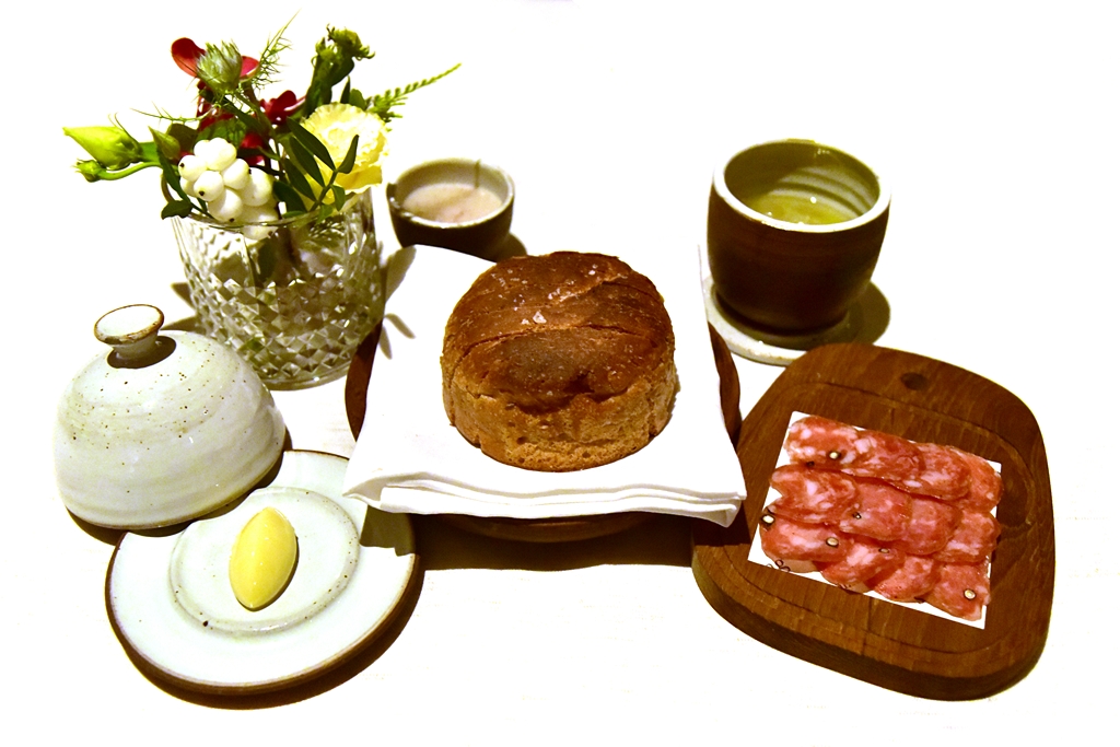 7th course: Brotzeit – ขนมปังอบใหม่จากยีสต์อายุกว่า 3 ปีเสิร์ฟคู่กับซาลามี่ เนยโฮมเมด ตับหมูบดและแตงกวาดอง เป็นเมนูที่เปิดให้ทานได้ตามชอบและขอบอกเลยว่าทุกอย่างดีมาก อร่อยมาก