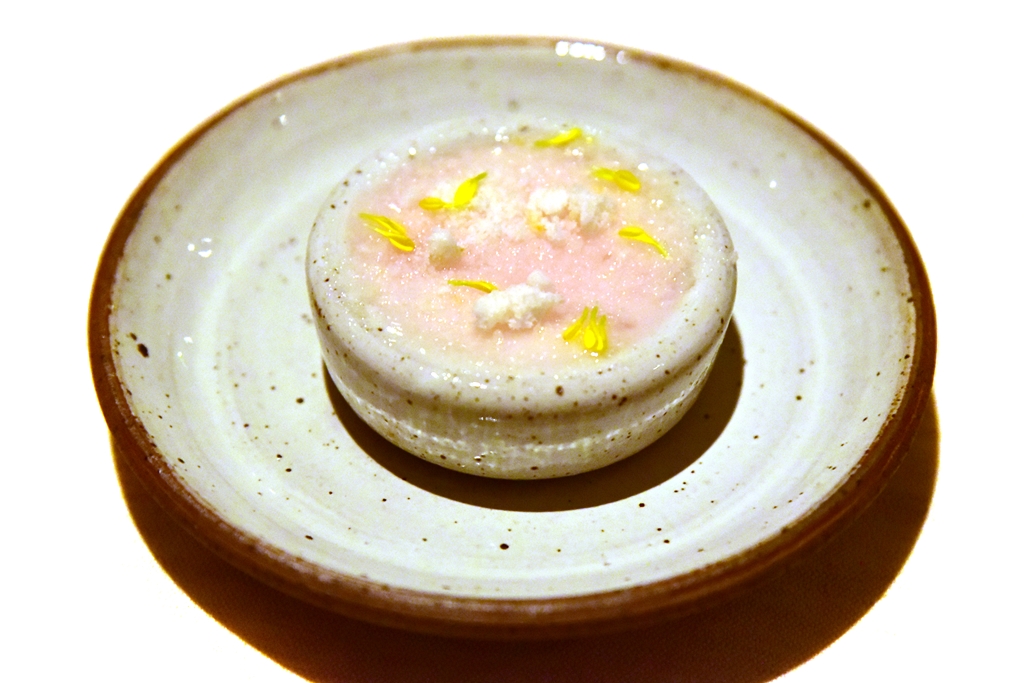 11th course: Elderflower Sorbet – ซอร์เบต์เอลเดอร์ฟลาวเวอร์สีชมพูหอมๆรสเปรี้ยวนิดๆสำหรับล้างเพดานปาก