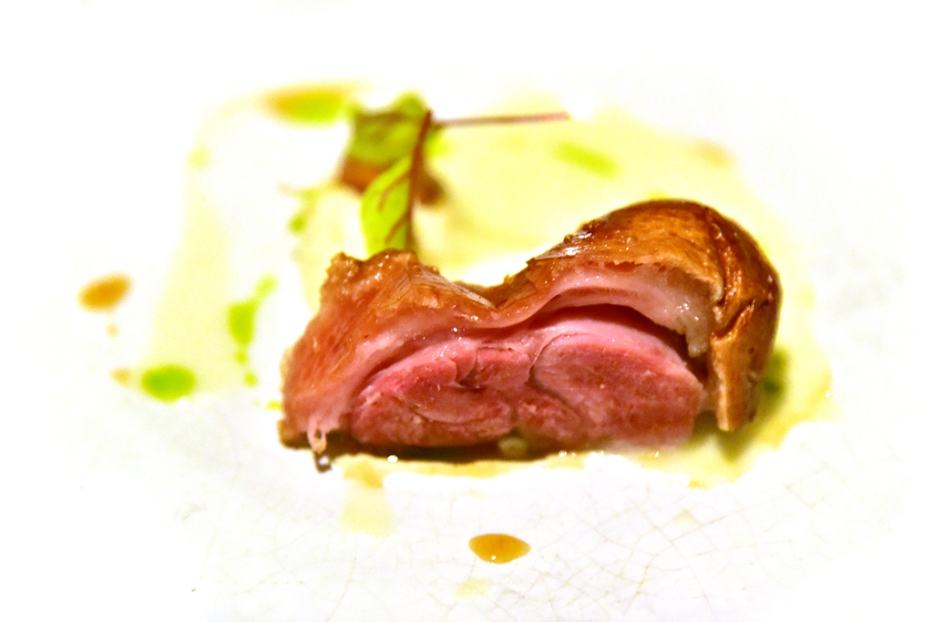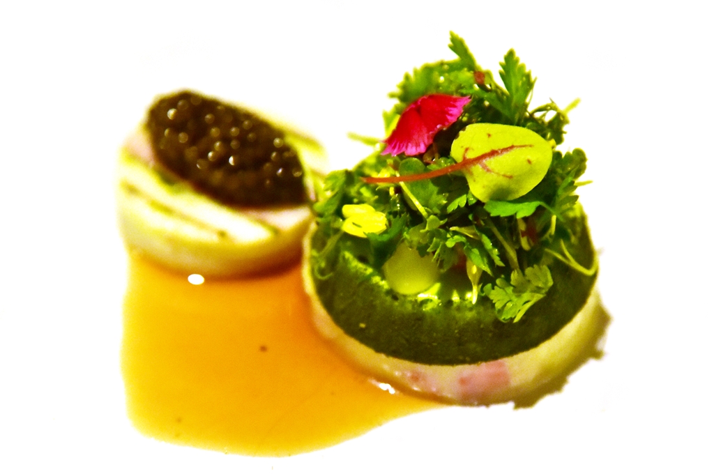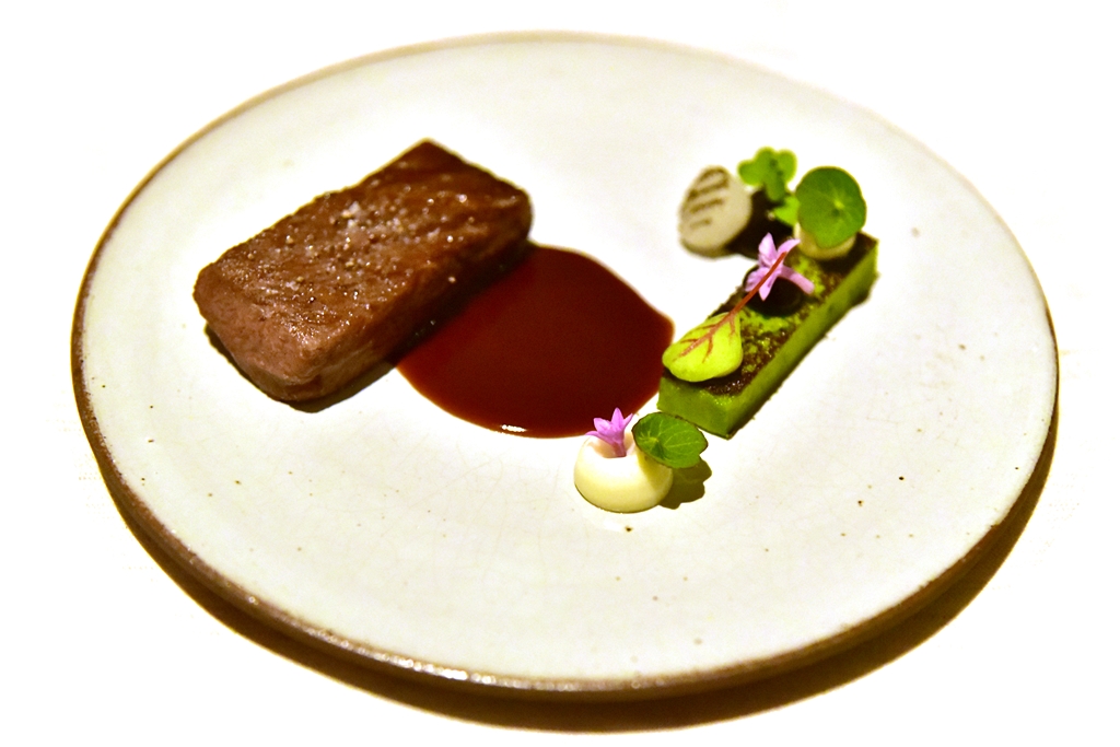 6th course: Frankfurt Style Green Sauce & Smoked Eel (add Caviar 390++ THB) – มูสเครื่องเทศสีเขียวสไตล์แฟรงต์เฟิร์ตทานคู่กับเนื้อปลาไหลรมควันและไข่ปลาคาเวียร์ เป็นเมนูที่รสชาติล้ำลึกมาก