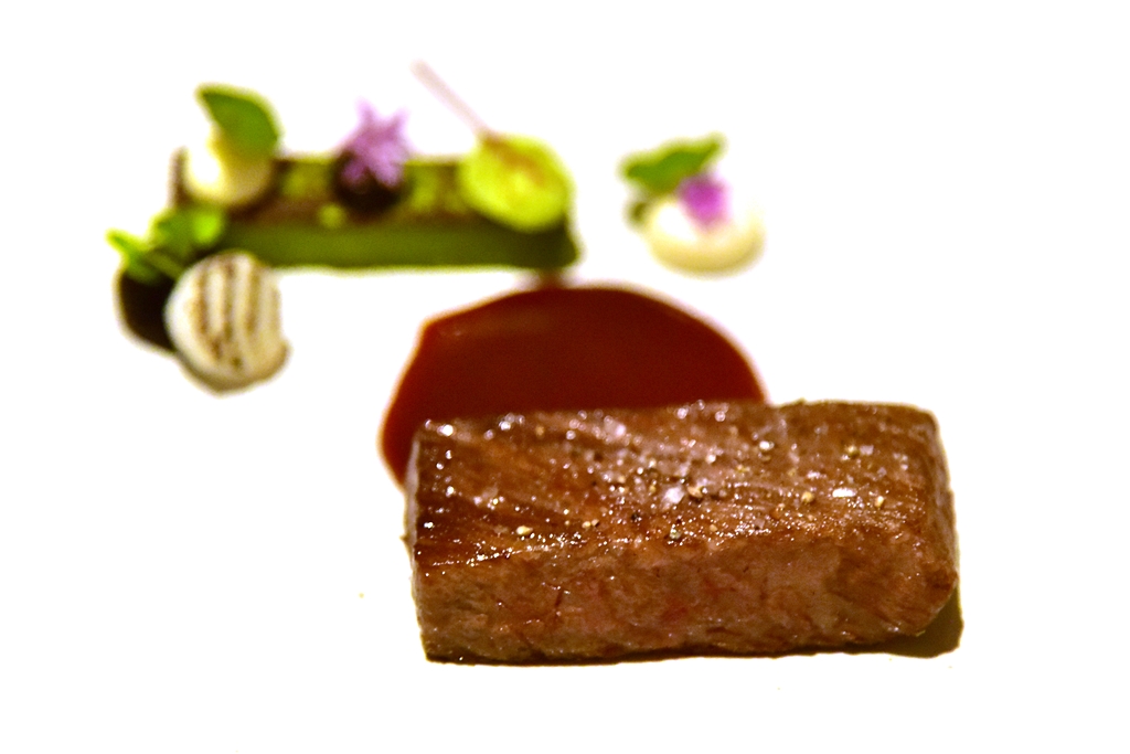Nozaki Beef Sirloin A5 (add 800++ THB) – เนื้อวากิวโนโซมิแบบ A5 ย่างแบบ medium ที่ละลาในปากได้แบบฟินๆสุดๆ เครื่องเคียงที่ให้มาก้ยอดเยี่ยม ทั้งตัวซอสเนื้อเข้มข้น ซอสครีมและตัวมันบดสีเขียว (ไม่แน่ใจว่าคือมันหรืออะไร แต่อร่อย !!) คุ้มค่ามากๆที่เปลี่ยนขาหมูจานนึงมาเป็นเมนูนี้แทน !!