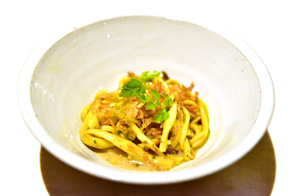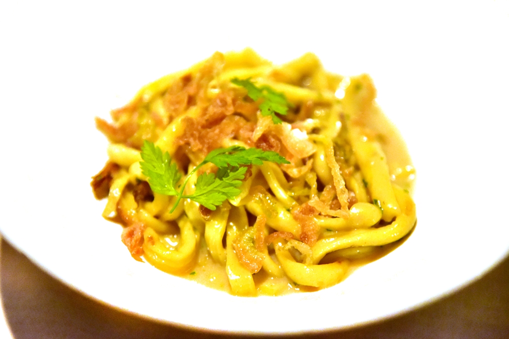 9th course: Spatzle – พาสต้าไข่เนื้อนุ่มเด้งในซอสชีสและเห็ดโรยหน้าด้วยหอมเขียว ถือเป็นเมนูที่อร่อยจนน้ำตาไหลเลยครับ ตัวเส้นมันดีมากกกกกกกกก ซอสก็ทานแล้วยิ้ม สมกับเป็นซิกเนเจอร์เมนูจริงๆ