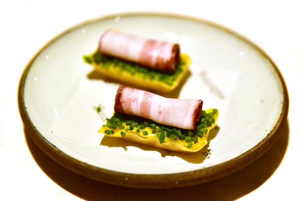 Sühring นำเสนอเมนูอาหารเยอรมันสไตล์ Modern German แบบคอร์สที่มีให้เลือก 2 รูปแบบ ได้แก่ Sühring Klassiker (3,600++ THB) และ Sühring Erlebnis (4,400++ THB) ที่มีจำนวนคอร์สเท่ากันคือ 13 คอร์สที่ถูกแบ่งออกเป็น 3 ส่วน (Chapter) ได้แก่ เมนูแบบคำเล็กหยิบทานได้ เมนูแบบจานที่เพิ่มทั้งขนาดและความอลังการและของหวาน ซึ่งรีวิวครั้งนี้ผมขอเลือก Sühring Klassiker ที่ใช้วัตถุดิบราคาย่อมเยากว่าหน่อยแต่ขอเพิ่มไข่ปลาคาเวียร์ (+390++ THB) และเปลี่ยนเมนคอร์สจานนึงเป็นเนื้อ Nozomi Wagyu A5 (+800++ THB) ครับ