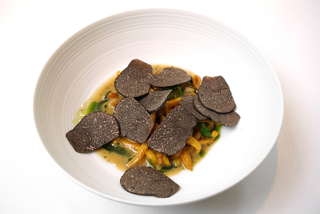 Extra course : SPÄTZLE & PERIGORD TRUFFLE / soft egg noodles / Allgäuer Mountain cheese (1,400++ THB) [17/20] – เมนูซิกเนเจอร์พาสต้าของ Sühring ที่ใช้แป้งพาสต้าที่ทีส่วนผสมของไข่มากกว่าตัวแป้งจนเนื้อนุ่มเด้งคลุกเคล้ากับชีสภูเขาและเห็ดแชมปิญอง โรยหน้าด้วยหอมใหญ่กรอบและเห็ดทรัฟเฟิลดำ