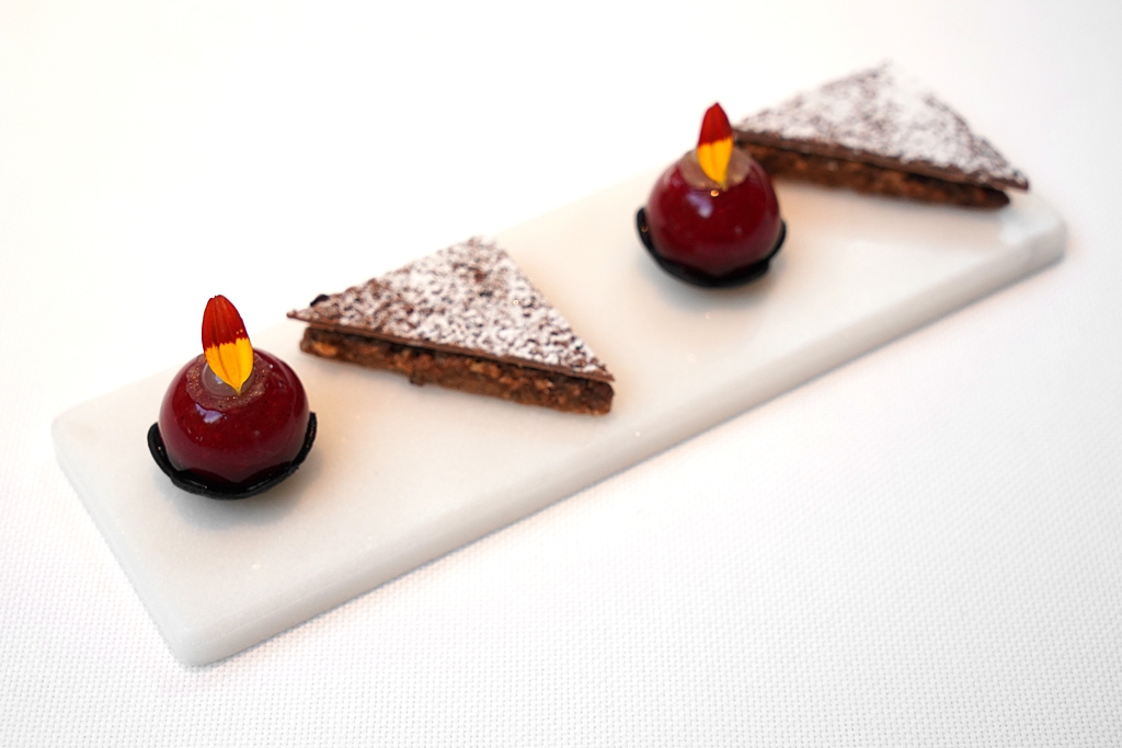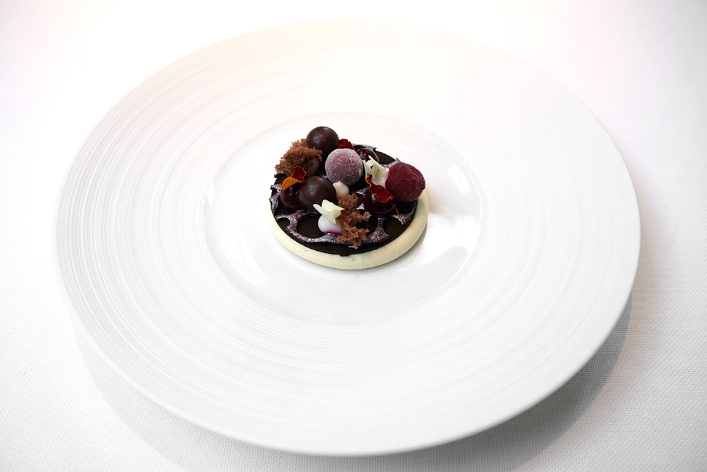 7th course : SCHWARZWALDER KIRSCHTORTE / beni 66% original beans / vanilla / kirsch [15/20] – เค้ก black forest เวอร์ชั่นปรับโฉมใหม่ ที่ประกอบไปด้วย ครีมวานิลลา แยมเบอร์รี ดาร์กช็อกโกแลต เชอร์รี่แช่แข็งและเนื้อเค้ก