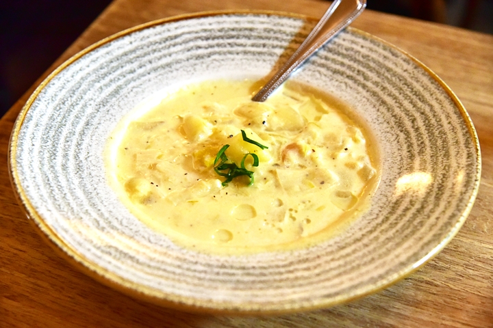 2. Cullen Skink (thick soup with haddock, potato, onion) (4.95 GBP) – ซุปครีมปลาแฮดด็อคและผักนานาชนิดที่รสชาติหอมมันนุ่มละมุนมาก