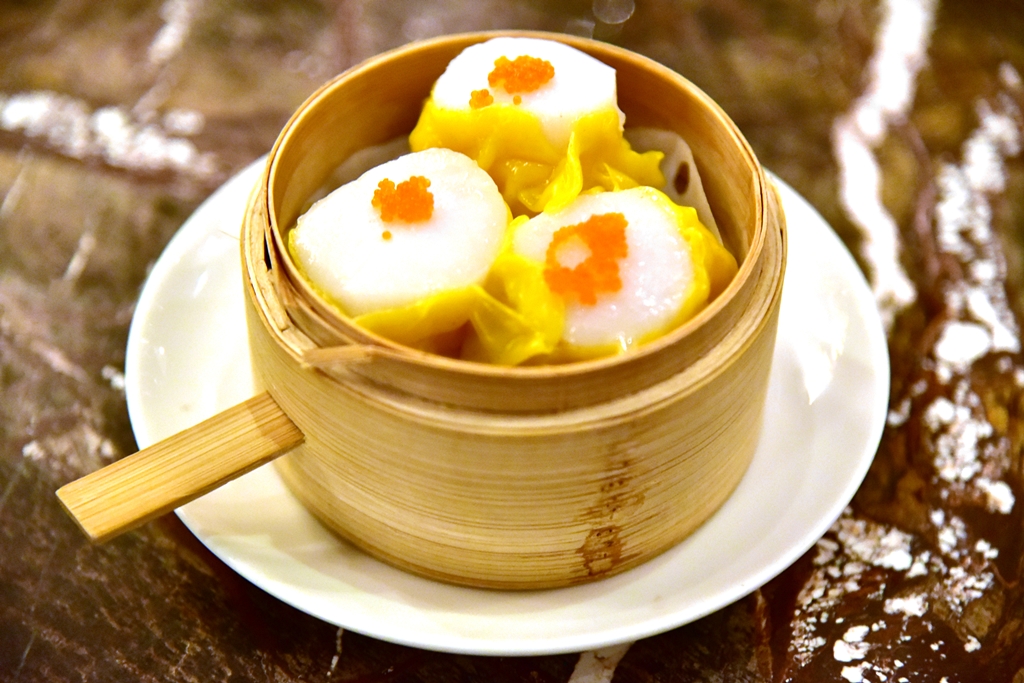 1. Scallop Shumai (8.20 GBP) – ขนมจีบเนื้อฉ่ำหน้าหอยเชลล์นึ่งเนื้อหวานหอม