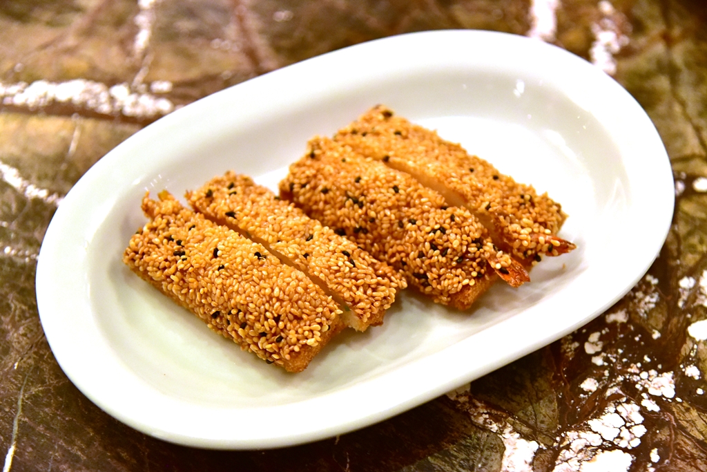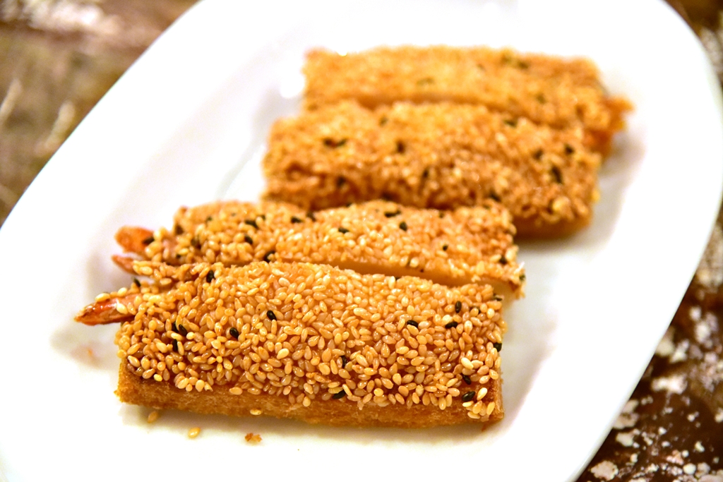 2. Sesame Prawn Toast (6.50 GBP) – กุ้งห่อขนมปังและงาชุบแป้งทอดกรอบ