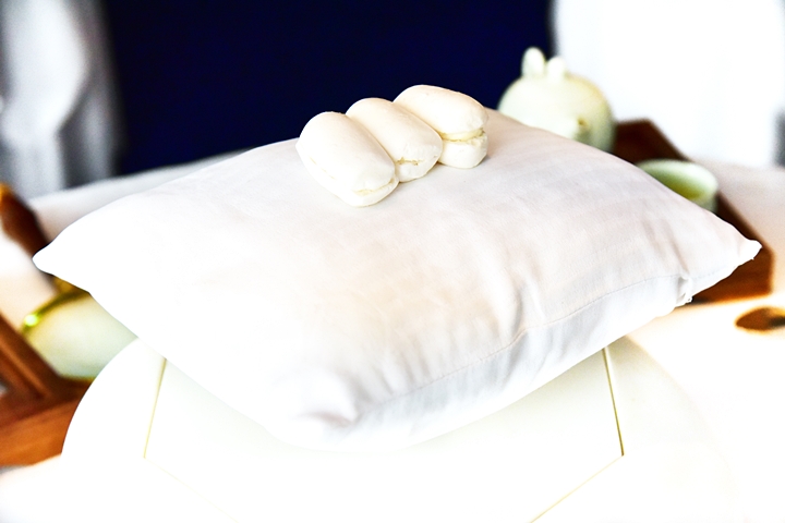 14th course: COUNTING SHEEP – เมนูสีขาวโพลนสำหรับก่อนนอนที่ประกอบไปด้วย “มาการองมอลต์” เนื้อเบาเสิร์ฟบนหมอนลอยฟ้าและ “ของหวานสีขาว” ที่ประกอบไปด้วยไอศกรีม เมอแรงค์และโมจิสอดไส้พิสตาชิโอ้ มันดีมากๆ
