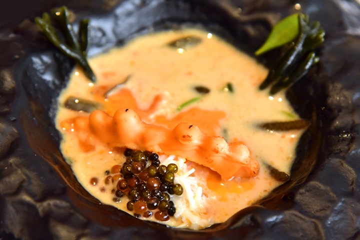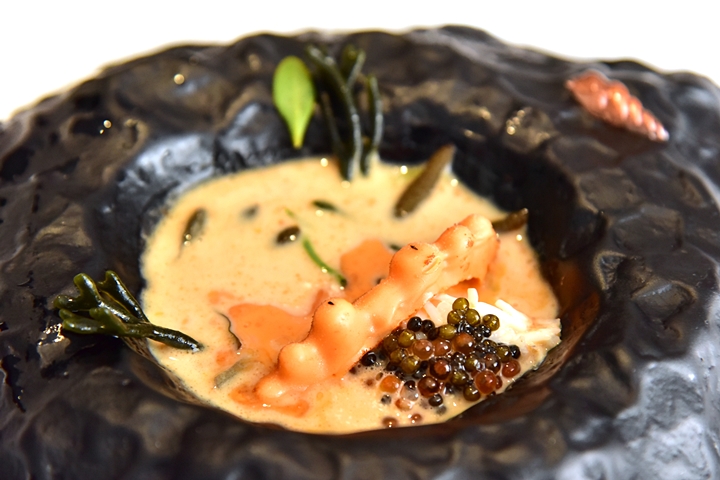 7th course: THEN WE WENT ROCKPOOLING – ซุปปูรสเข้มข้นกลมกล่อมและยอดเยี่ยมมากๆที่ประกอบไปด้วย ไวท์ช็อกโกแลตรูปปูหน้าตาน่ารัก ไข่ปลาเทราท์และไข่คาเวียร์รมควันและสาหร่ายทะเลเนื้อกรึบๆนานาชนิด มันยอดมากกกกกกกกก