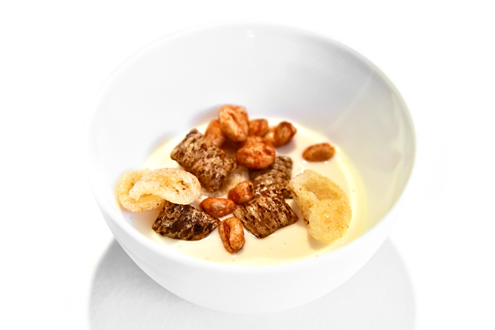 4th course: WHY DO I HAVE TO CHOOSE BETWEEN a VARIETY PACK and a COOKED BREAKFAST – เซ็ตเมนูอาหารเช้าที่ไม่ธรรมดาอันประกอบไปด้วยซีเรียลรสแปลกๆอย่างเห็ดและไส้กรอกที่ทานคู่กับพุดดิ้งเจลลี่มะเขือเทศและครีมเบค่อนซึ่งเข้ากันได้ดีมากๆและรสชาติแปลกใหม่มากๆ พร้อมด้วยเมนูขนมปังเนื้อเนียนนุ่มหนึบหนับที่เสิร์ฟคู่กับเนยเนื้อนุ่มและแยมมะเขือเทศผสมกาแฟ