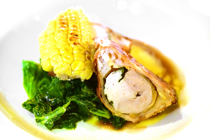 2nd course: Jambonette of Perthshire Guinea Fowl ‘en croute’ – เนื้อไก่กินีฟาวล์ในแป้งพาสตรีเสิร์ฟคู่กับข้าวโพดย่างและผัก