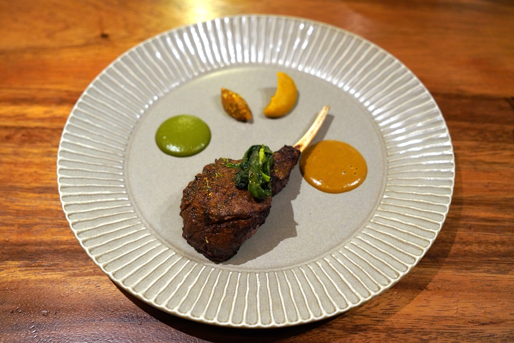 11th course : Mysore Spiced Rack of Lamb ~ Madras Kari Kuzhambu ~ Butternut Squash Masala ~ Achar Thogayal ~ Lamb Biryani [17/20] – ซี่โครงแกะหมักเครื่องเทศย่างเนื้อนุ่มหอมเสิร์ฟคู่กับข้าวหมกเนื้อแกะและชัทนีย์หลากหลายรสชาติ