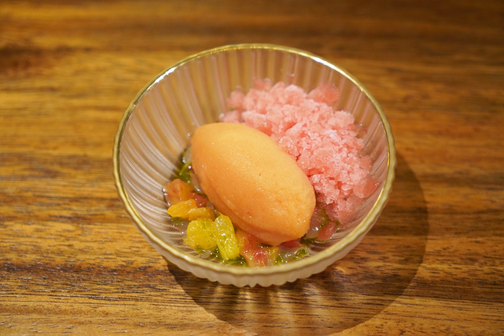 12th course : Blood Orange Falooda [15/20] – น้ำแข็งไสแบบอินเดียเสิร์ฟกับไอศกรีมส้มบลัดออเรนจ์รสเปรี้ยวสดชื่น