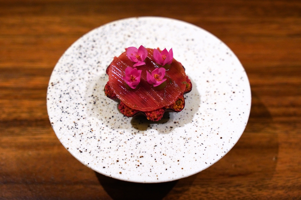 1st course : Rhubarb Chaat [18/20] – เมนูเรียกน้ำย่อยสุดโปรดที่ใช้เบสผลไม้รสเปรี้ยวเป็นรูบาร์บเสิร์ฟคู่กับชัทนีย์ผักชีและสตรอว์เบอร์รี