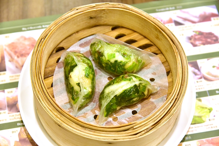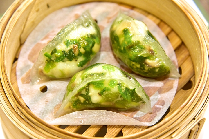 4. Steamed Spinach Dumpling with Shrimp (100++ THB) – เกี๊ยวนึ่งไส้ผักโขมและเนื้อกุ้ง
