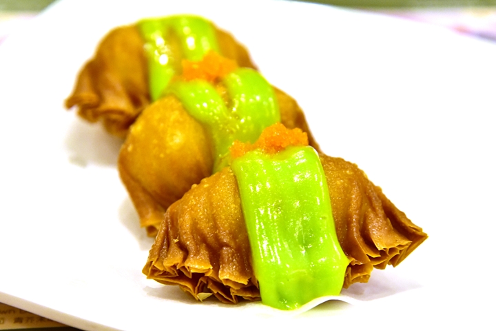 7. Wasabi Salad Prawn Dumpling (130++ THB) – เกี๊ยวกุ้งทอดแป้งกรอบราดซอสวาซาบิที่เข้ากันได้อย่างไม่น่าเชื่อ