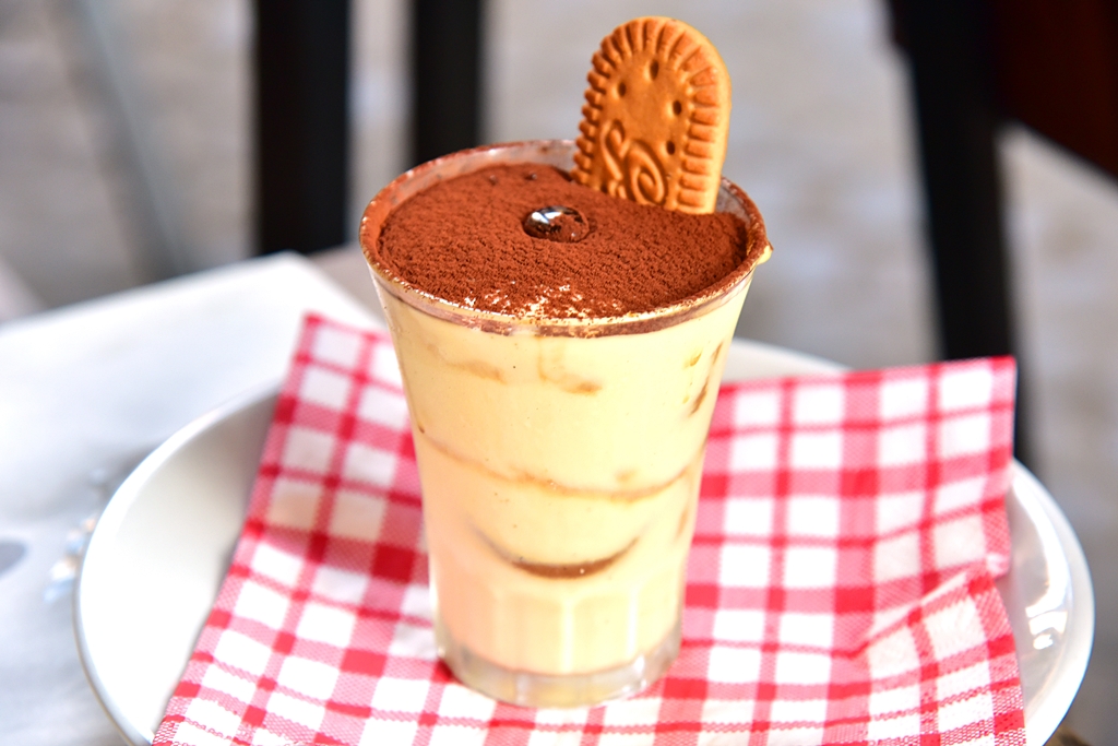 5. Tiramisu della Casa (6.0 EURO) – ทิรามิสุรสชาตินุ่มละมุนละไมเสิร์ฟในแก้วกับคุกกี้