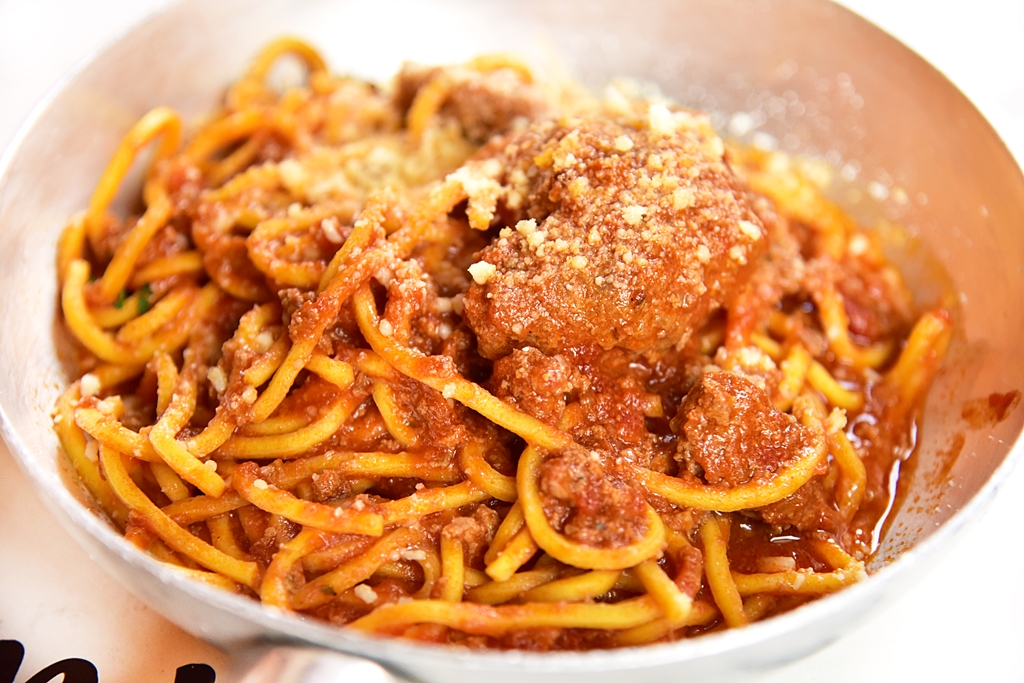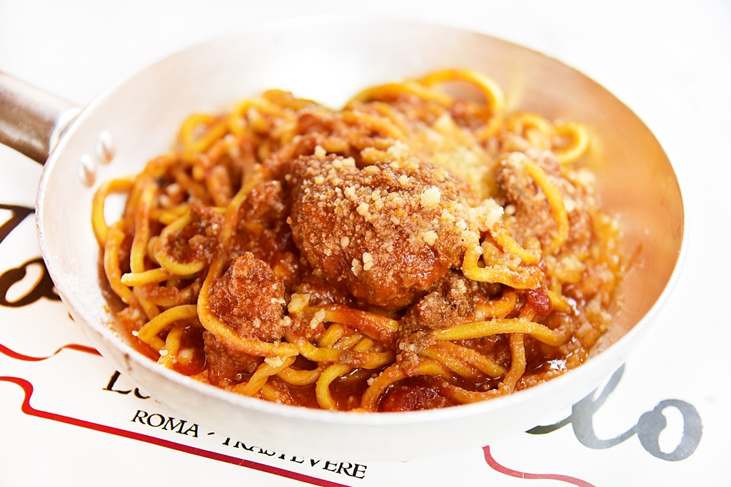 4. Tonnarello with Meat Balls (12.5 EURO) – พาสต้าเส้นกลมหนาในซอสมะเขือเทศและมีทบอล สั้นๆ “อร่อยโคตร”