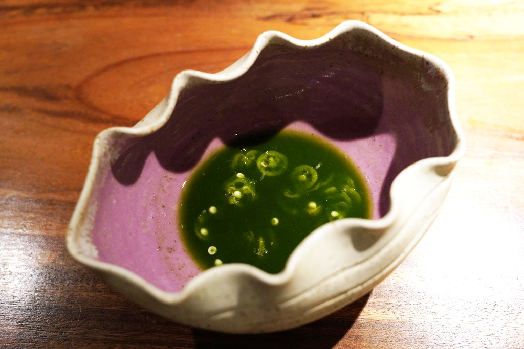 2nd course : Halaan [17/20] – เมนู “ซุปหอยตลับ“ ที่นำมาปรับโฉมใหม่โดยเสิร์ฟหอยตลับกับหน่อไม้ในโฟมครีมเหล้าข้าวและขิงโรยหน้าด้วยผงใบมะรุม ถือเป็นเมนูซุปที่ครีมนุ่มละมุนมากๆและเนื้อหอยก็เด้งเข้ากันจริงๆ
