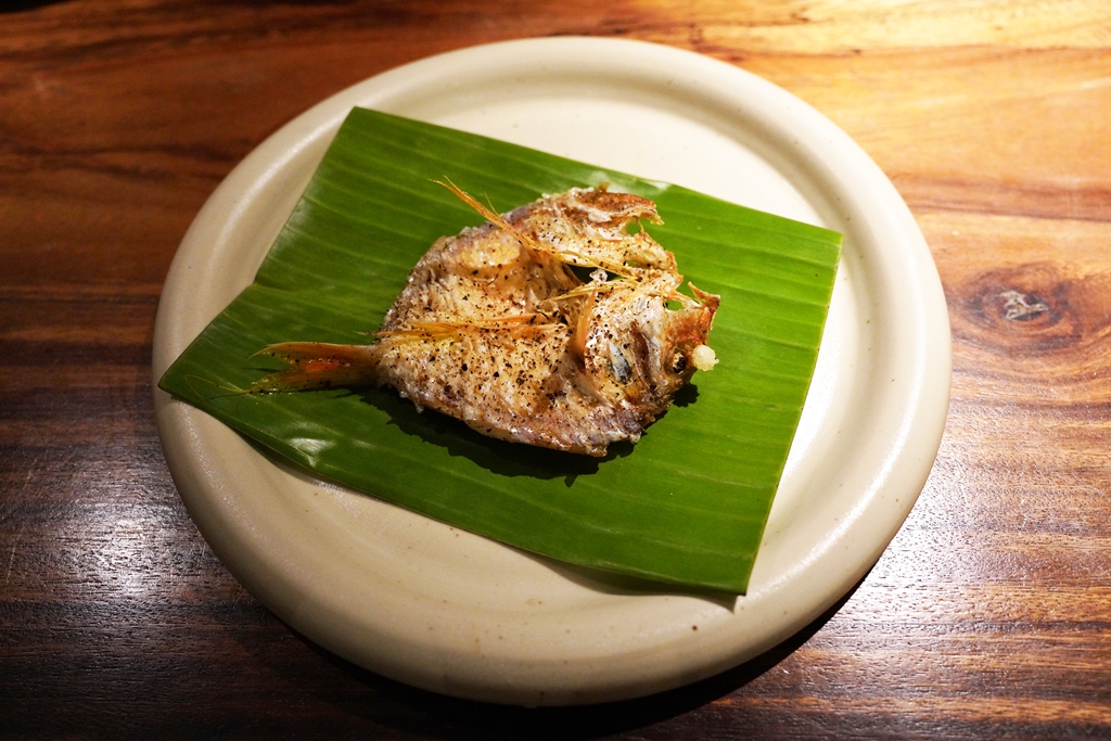9th course (Main #3) : Pinirito at Ensalada [15/20] – เมนู “ปลาทอดกรอบ“ ที่ใช้เป็นปลา bisugo ทอดจนเนื้อกรอบๆทานได้ทั้งตัวปรุงรสเค็มๆครับ