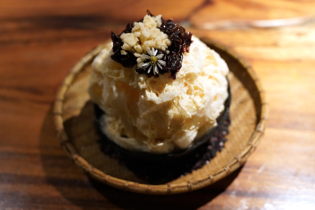 10th course : Tapay Sorbetes [18/20] – เมนู “น้ำแข็งไสข้าวหมัก” สไตล์คากิโกริญี่ปุ่นที่เนื้อหอมๆเบาๆสดชื่นมากๆทานคู่กับสาหร่ายรสเค็มอ่อนๆโรยเกลือที่เพิ่มมิติได้อย่างลงตัว ถือเป็นคากิโกริที่โคตรอร่อย
