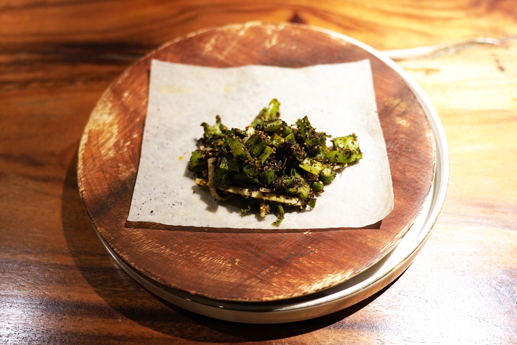 5th course : Saluyot, Okra, Labanos at Pipino [13/20] – เมนู “ซุปผัก” ที่ใช้เบสเป็นซุปหมูพร้อมด้วยผักสีเขียวอย่างใบปอกระเจา กระเจี๊ยบเขียวและหัวผักกาด เสิร์ฟคู่กับแตงกวาดอง เมนูนี้รสชาติเขียวมากครับและก็มีความหนืดๆของกระเจี๊ยบแบบเต็มๆ แปลกดี แต่ไม่อินครับ