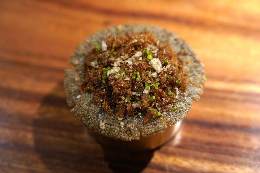 7th course : Alimasag, Gata, Palapa [17/20] – เมนู “เนื้อปู” ฉีกขึ้นรูปเป็นแท่งๆรสหวานฉ่ำที่ให้มาอย่างจุใจเสิร์ฟคู่กับแกงกะทิเครื่องเทศรสเผ็ดหวานพร้อมด้วยหอมเจียวกรอบๆ จานนี้สายเนื้อปูน่าจะชอบมากๆครับ องค์ประกอบแปลกใหม่แต่เข้ากันอร่อยดีงาม
