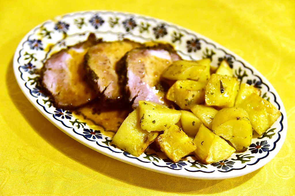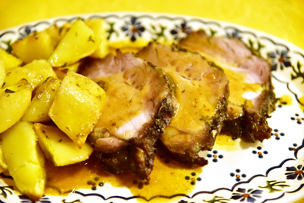 2. Roast Pork with Potatoes (12.50 EURO) – เนื้อหมูอบชิ้นโตเนื้อนุ่มฉ่ำใช้ได้เสิร์ฟกับมันฝรั่งอบ
