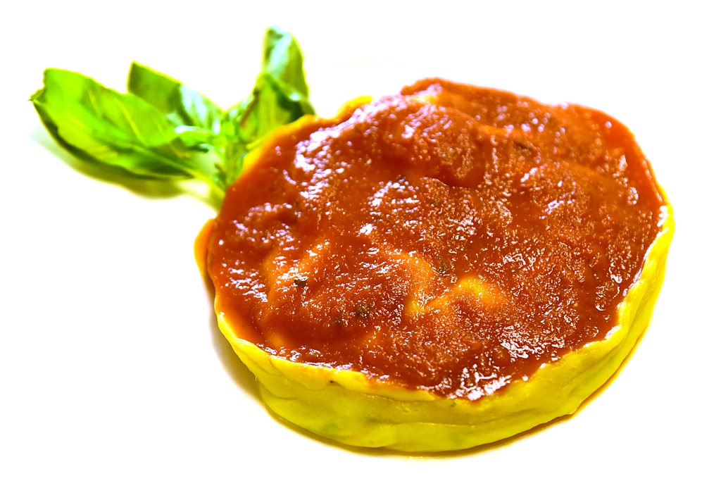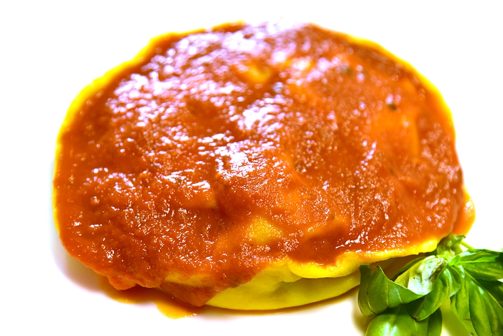 3. Tortello in Tomato Sauce (13 EURO) – พาสต้าแบบเกี๊ยวชิ้นใหญ่สอดไส้ไข่ไก่เยิ้มๆราดด้วยซอสมะเขือเทศ