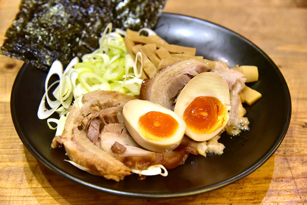 3. Zenbu Nose (100+ THB) – ท็อปปิ้งเซ็ตใหญ่ที่ประกอบไปด้วยหมูชาชูมันแทรกที่ย่างมาได้นุ่มละลายกำลังดี ไข่ต้มยางมะตูม หน่อไม้ดองกรอบๆ ต้นหอมแบบจัดเต็มและสาหร่ายโนริแผ่น ทุกอย่างทานคู่กับทสึเคเมนแล้วเด็ดมาก
