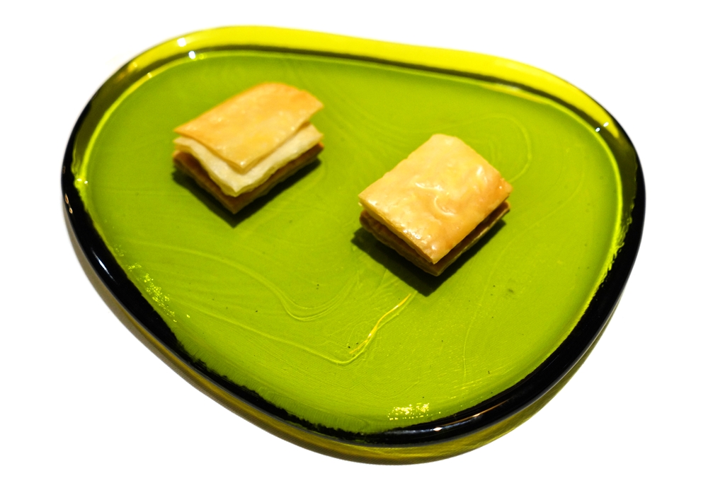 10th course : Petit Fours [13/20] – เมนูขนมหวานปิดท้ายมื้ออาหารที่ทำถวายแด่ Black Pink ที่มีสมาชิก 4 คน ได้แก่ โคลอนไส้ครีมสตรอเบอร์รี ลูกชุบผสมบรั่นดี มิลเฟยคาราเมลไวท์ช็อกโกแลตและช็อกโกแลตเกาลัดกาแฟ