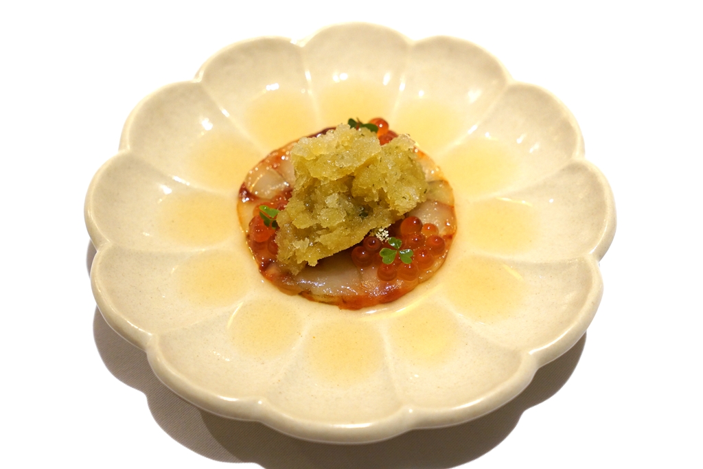 3rd course : Nakhon Sri Thammarat Banana Prawn | Ikura | Thai Seafood Granita [17/20] – กุ้งแช่น้ำปลาที่ใช้กุ้งแชบ๊วยซาชิมิฟรีซกับพริกเกาหลีเสิร์ฟคู่กับไข่ปลาแซลม่อนและกรานิต้าน้ำจิ้มซีฟู้ดรสแซ่บ