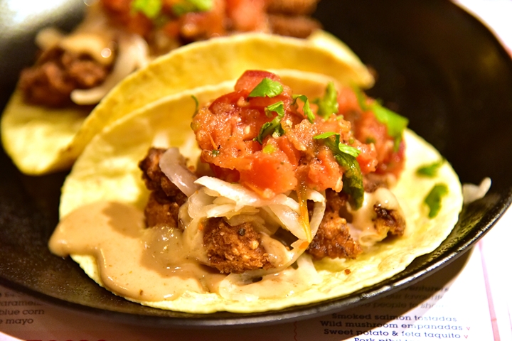 3. Buttermilk Chicken Baja Tacos (5.75++ GBP) – ทาโก้หน้าไก่ชุบแป้งทอดเสิร์ฟคู่กับซอสพริกฮาบาเนโร่ ต้นหอมขาวและมายองเนส