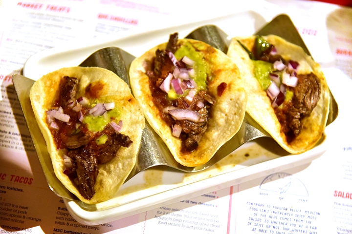 2. Grilled British Steak Tacos (4.95++ GBP) – ทาโก้เนื้อย่างราดซอสพริกชิโพเล่และหอมแดง