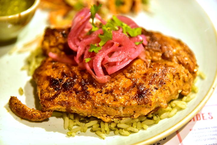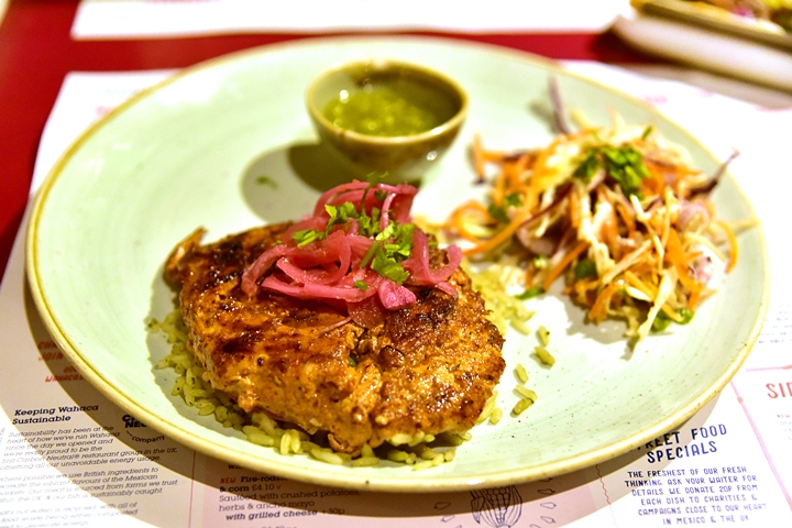 5. Yucatecan Grilled Chicken (12.45++ GBP) – อกไก่หมักเครื่องเทศแม็กซิกันย่างเสิร์ฟคู่กับข้าวสีเขียวและสลัดผักดอง