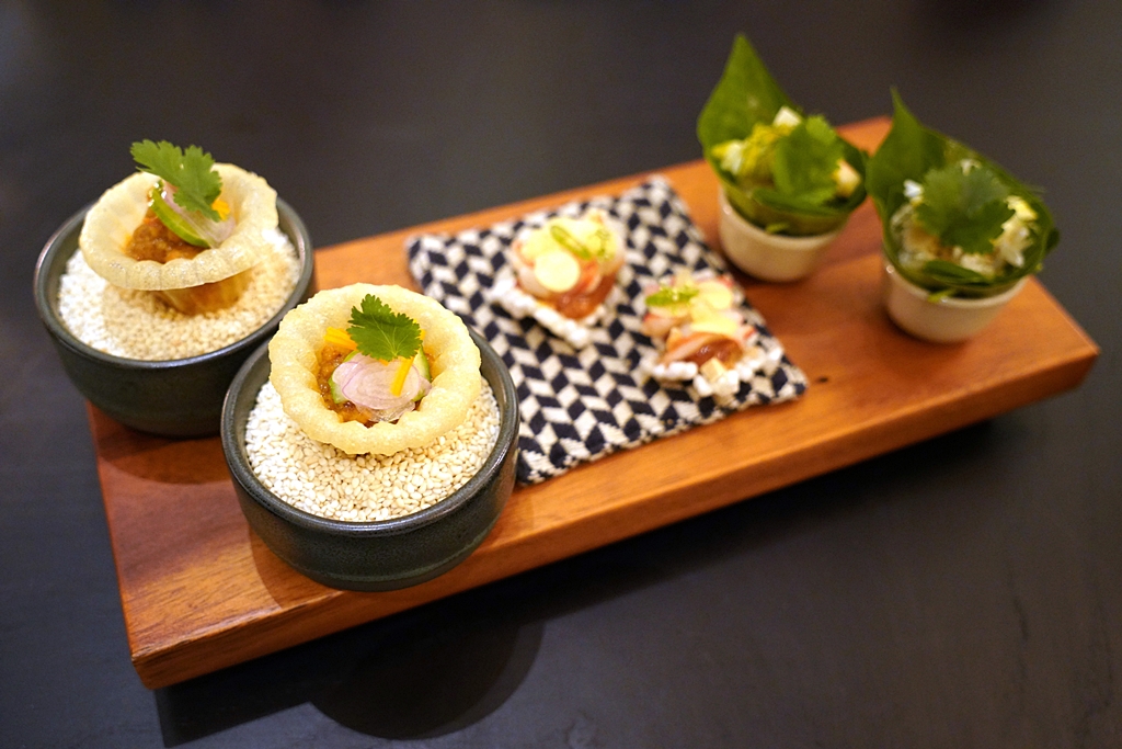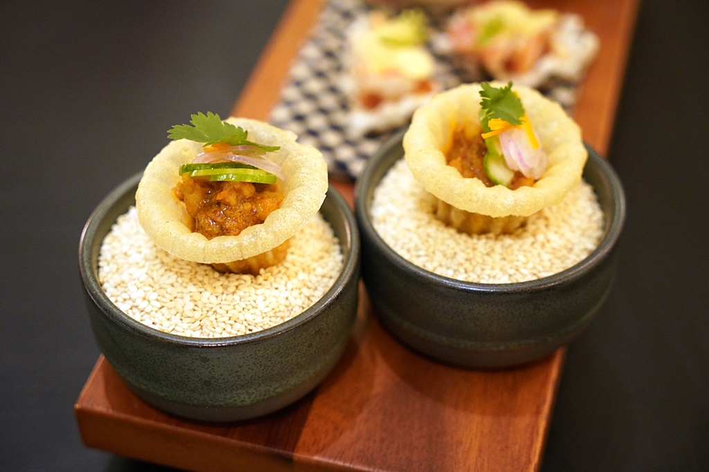 1st course: KIN-LEN [16/20] – เมนู “กินเล่น” เรียกน้ำย่อยของร้าน Wanayook ที่ประกอบไปด้วยกรวยกะหรี่กุ้ง ข้าวตังก้อยกุ้งแช่น้ำปลาและเมี่ยงคำเนื้อปูรสเปรี้ยวเผ็ด สามอย่างนี้ถือเป็นการเปิดมื้ออาหารที่ยอดเยี่ยมครับ อร่อย จัดจ้าน สดชื่น รับประกันว่าหิวทันที