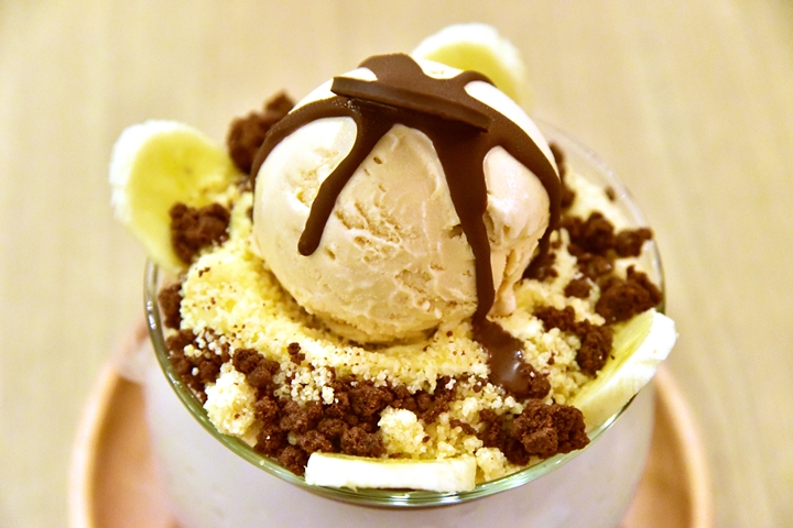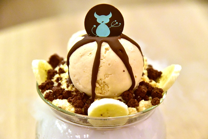 4. Bla Bla (220++ THB) – บานอฟฟี่พายเวอร์ชั่น Wicked ในรูปของไอศกรีมบานอฟฟี่วางบนแพนนาคอตตาช็อกโกแลตโรยหน้าด้วยครัมเบิ้ลกับกล้วยหอม