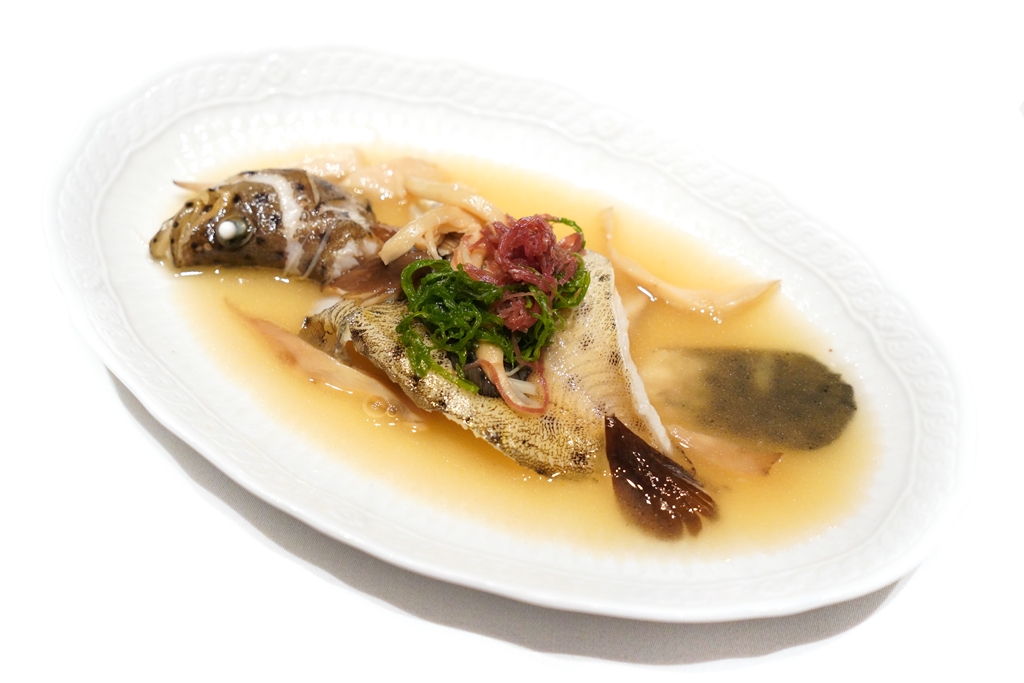 5th course : Steamed Panther Grouper with Fresh Termite Mushroom [16/20] – ปลาเก๋าลายเสือนึ่งเนื้อนุ่มละลายหนังหนึบเสิร์ฟคู่กับเห็ดโคนเนื้อกรึบและเส้นหมี่ในซุปปลาผสมซุปไก่