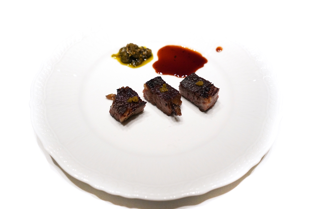 6th course : Braised Prime Beef Rib [19/20] – เนื้อซี่โครงที่ผ่านการตุ๋นนาน 16 ชั่วโมงก่อนนำมาย่างบนเตาถ่านจนสมบูรณ์แบบเสิร์ฟคู่กับซอสรสหวานกลมกล่อมและซอสพริกหวานเผา เมนูนี้ถือเป็นเมนูเนื้อที่ดีที่สุดอันดับต้นๆที่เคยทานเลยครับ !!