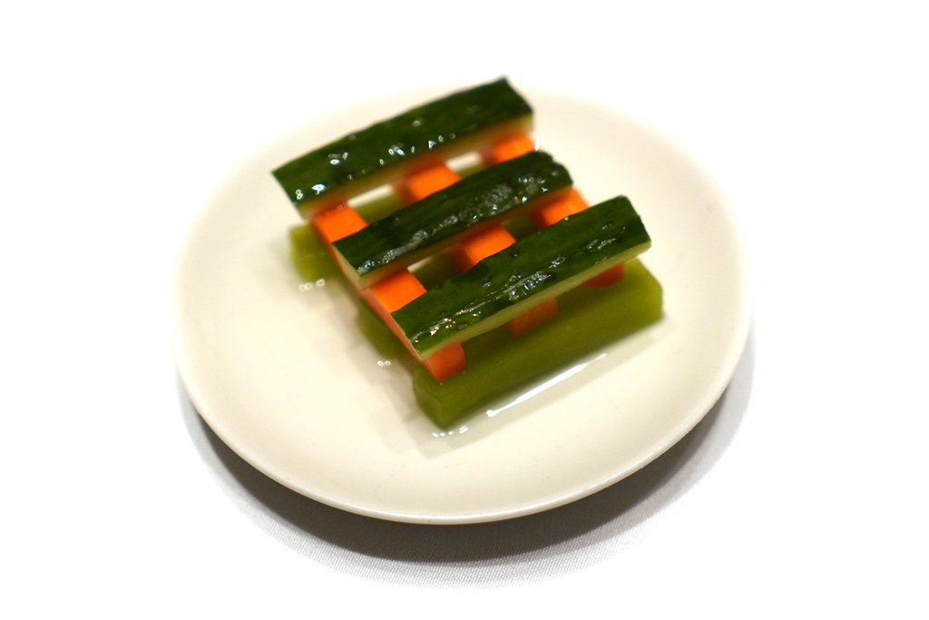 1st course : Green Papaya, Hongru Mushroom and Taizhou Squid [16/20] – ปลาหมึกเนื้อเด้งเสิร์ฟคู่กับเห็ดเนื้อเจลลี่นุ่มๆและมะละกอในน้ำยำรสเปรี้ยวเผ็ด