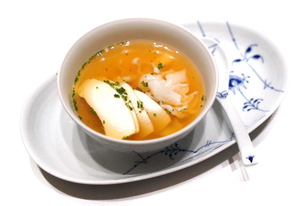 3nd course : Quick-boiled Scotland Razor Clam and Matsutake in Chicken Broth [17/20] – ซุปไก่รสละมุนเสิร์ฟคู่กับหอยหลอดเนื้อหนึบและเห็ดมัตสึทาเกะ