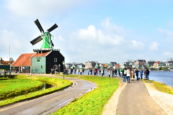 Zaanse Schans (ซานเซ่ สะชานส์ – อ่านอีก 10 รอบก็น่าจะยังจำไม่ได้ ฮ่าๆๆ) คือ หมู่บ้านกังหันลมของชาวนาที่เปิดให้นักท่องเที่ยวจากทั่วโลกเดินทางเข้ามาเยี่ยมชมบรรยากาศชนบทของชาวเนเธอร์แลนด์ได้อย่างสะดวก เนื่องจากการเดินทางที่สามารถทำได้ง่ายๆผ่านรถไฟในเวลาประมาณแค่ 30-40 นาทีเท่านั้น (ลงที่สถานี Zaandijk Zaanse Schans)